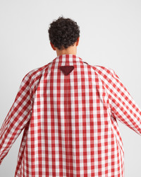 The distinctive gingham check motif is reinterpreted in a macro version with modernist allure on this cotton coat with clean lines and opaque tones. Classic retro 1950s designs are reinterpreted in the Spring Summer 2023 collection, creating a continuous dialogue between past and present. Prada explores the antithesis between minimalism and embellishment, formal occasions and everyday life, and ancient and modern, creating garments that constantly play with dissimilarity and paradox. - Product code: SGC215_12OB_F0970_S_231 - Regular fit - Lapel collar - Raglan sleeves - 4-button closure - Wide welt pockets - Cuff with strap and button - Regular shoulder - Back vent - Unlined garment - Knit triangle logo on the back - Height: 104cm MATERIALS Cotton