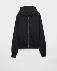 This casual but sophisticated, cotton fleece hoodie interprets urban style with the unmistakable signature of Prada. The knit logo and zipper complete the relaxed yet refined look. - Product code: UJL21C_16HG_F0207_S_OOO - Boxy fit - Long sleeve - Attached hood - Ribbed knit hem - Ribbed knit cuffs - Zipper closure - Knit triangle logo - Length 64 cm, Size: M - Pouch pocket - Imported - The model is 187 cm tall and wears a size 48 Height: 64cm MATERIALS Main material: 100% cotton