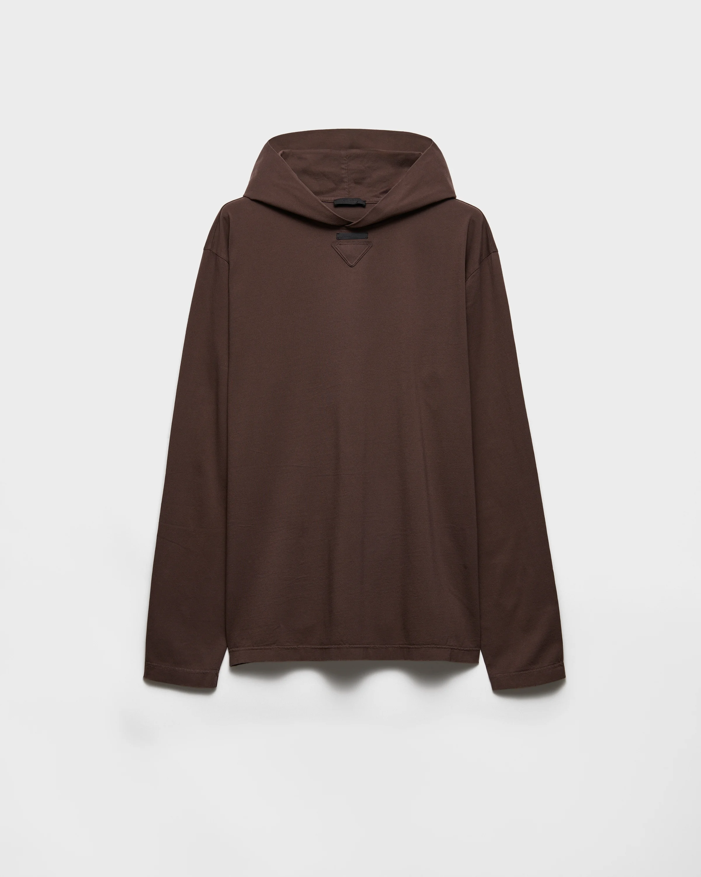 This long-sleeved tee made of soft cotton has a hybrid design with contemporary style. The hooded silhouette features a distressed effect that gives the versatile style a distinctive character. - Product code: UJL46C_17Z3_F0324_S_OOO - Oversized fit - Long sleeves - Attached hood - Straight hem - Fabric triangle logo and sartorial logo label - Length 74 cm, size: M - Distressed effect on the sleeve trim and hem - Imported - The model is 189 cm tall and wears a size 48 Height: 74cm MATERIALS Main material: 100% cotton