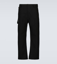 In a straight-leg silhouette, these pants from Prada are crafted from cotton and have a classic zipper fly fastening. Product Details - Insert: 100% polyamide - Details: 100% calf leather - Care instructions: hand wash - Designer color name: Nero - Contains non-textile parts of animal origin - Closure: zipper fly, button and hook fastenings - Pockets: side slit pockets, back pockets - Belt loops - Material: 100% cotton - Pocket lining: 100% cotton - Made in Romania - Item number: P00632806 Size & Fit - Fits large to size - we recommend trying one size smaller - Wide-leg - The model in the picture is 185cm-6'1" and wearing a size IT 46