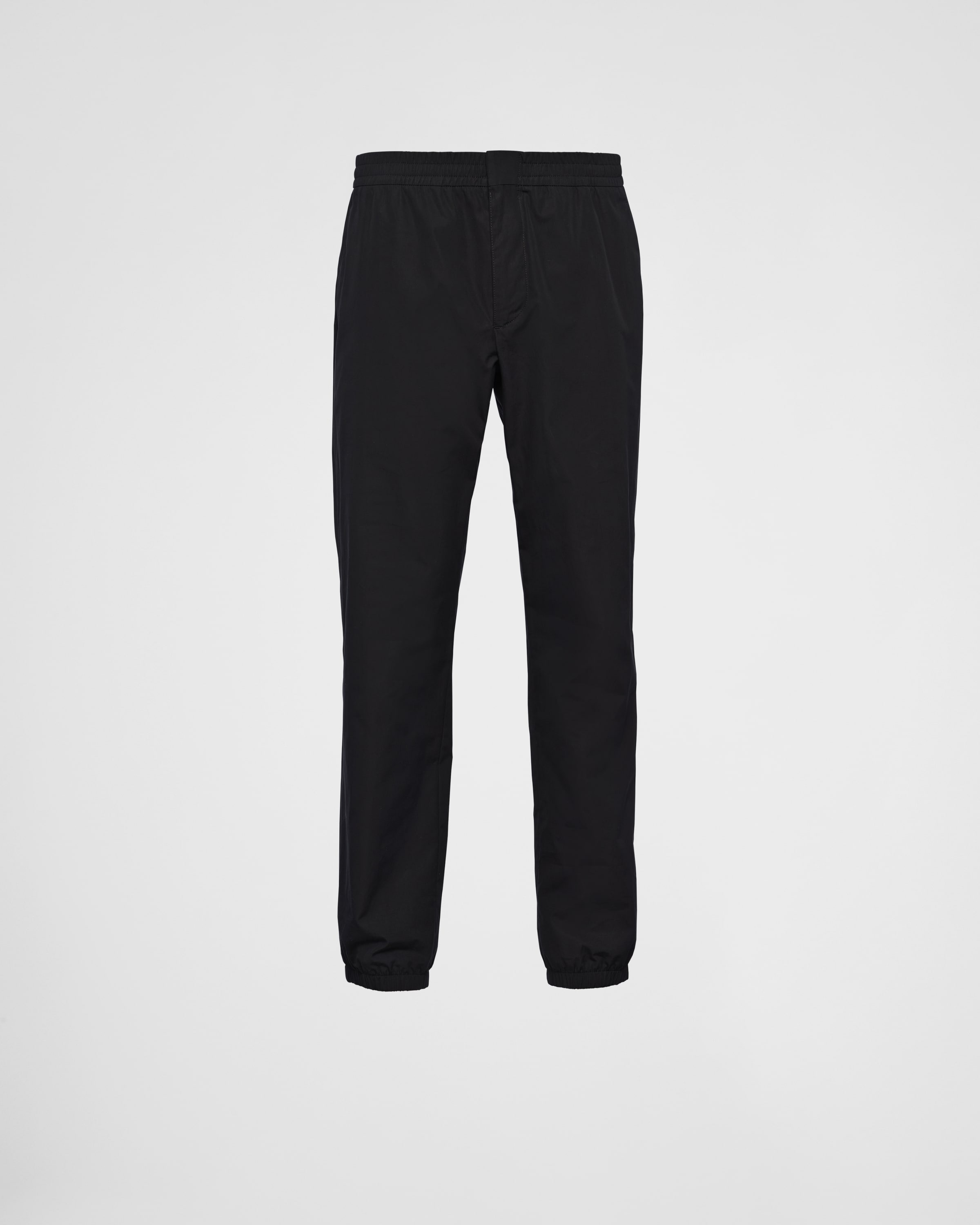 Basic utility-inspired details animate these pants characterized by a soft silhouette that culminates with an elasticized hem for relaxed, contemporary charm. The versatile cotton style with a casual attitude is completed by the iconic signature of the fabric triangle logo on the back pocket. - Product code: SPH372_1XV2_F0002_S_OOO - Elasticized waistband with drawstring - Hidden zipper fly with hook - Angled front slash pockets - Back welt pocket with button - Elasticized hem - Fabric triangle logo on the back - Imported - The model is 189 cm tall and wears a size 48 Height: 100cm MATERIALS Cotton