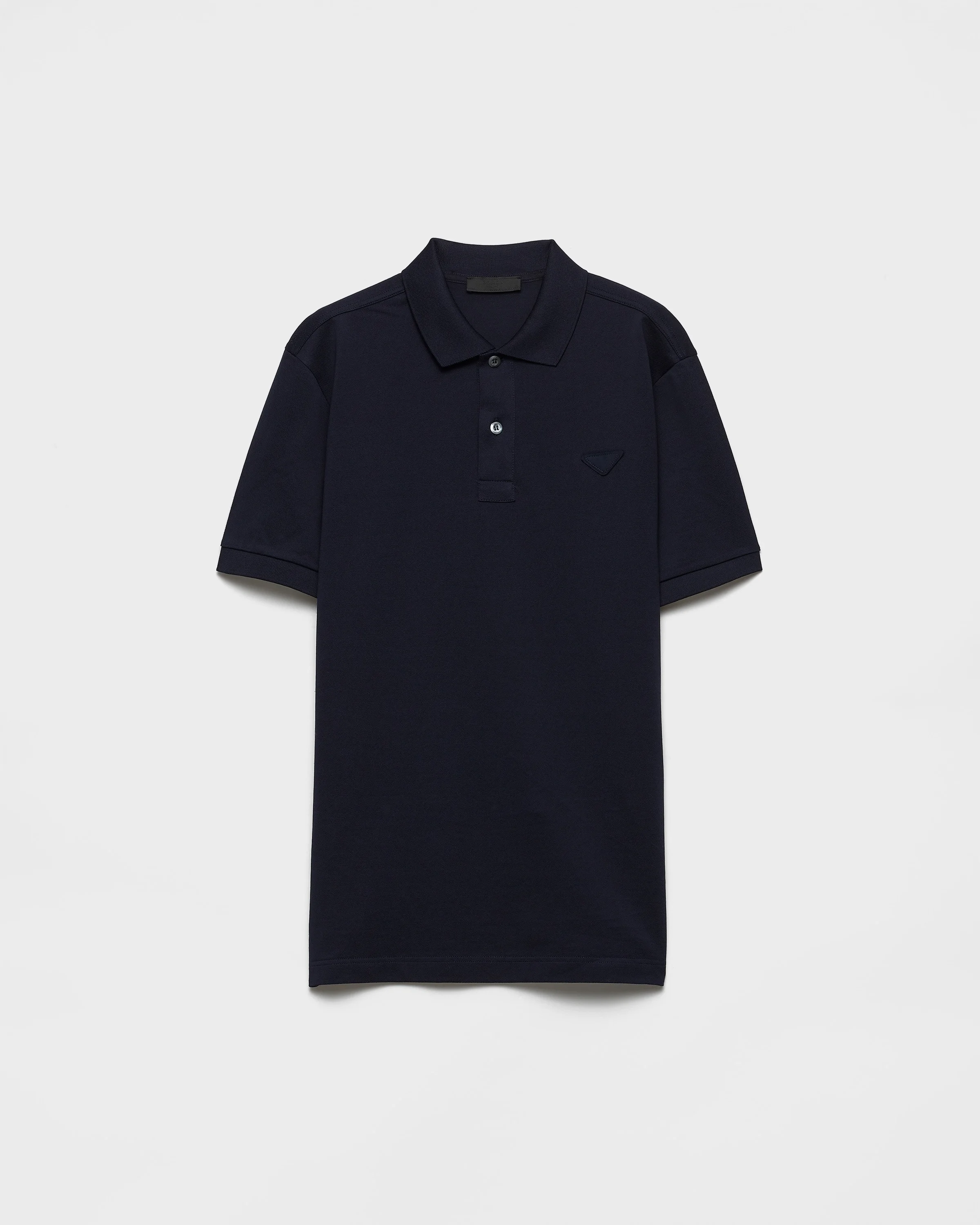 A sporty, casual silhouette defines this pique polo shirt with classic lines. The short-sleeved style with lustrous mother-of-pearl buttons is decorated with the iconic tonal triangle logo reinterpreted with a conceptual design. - Product code: UJN444_XGS_F0124_S_WEO - Short sleeve - Ribbed knit collar - Straight hem - Ribbed knit sleeve trim - Mother-of-pearl buttons - Conceptual triangle - Length: 70 cm, size: M - Imported - The model is 189 cm tall and wears a size 48 Height: 68cm MATERIALS Main material: 100% cotton