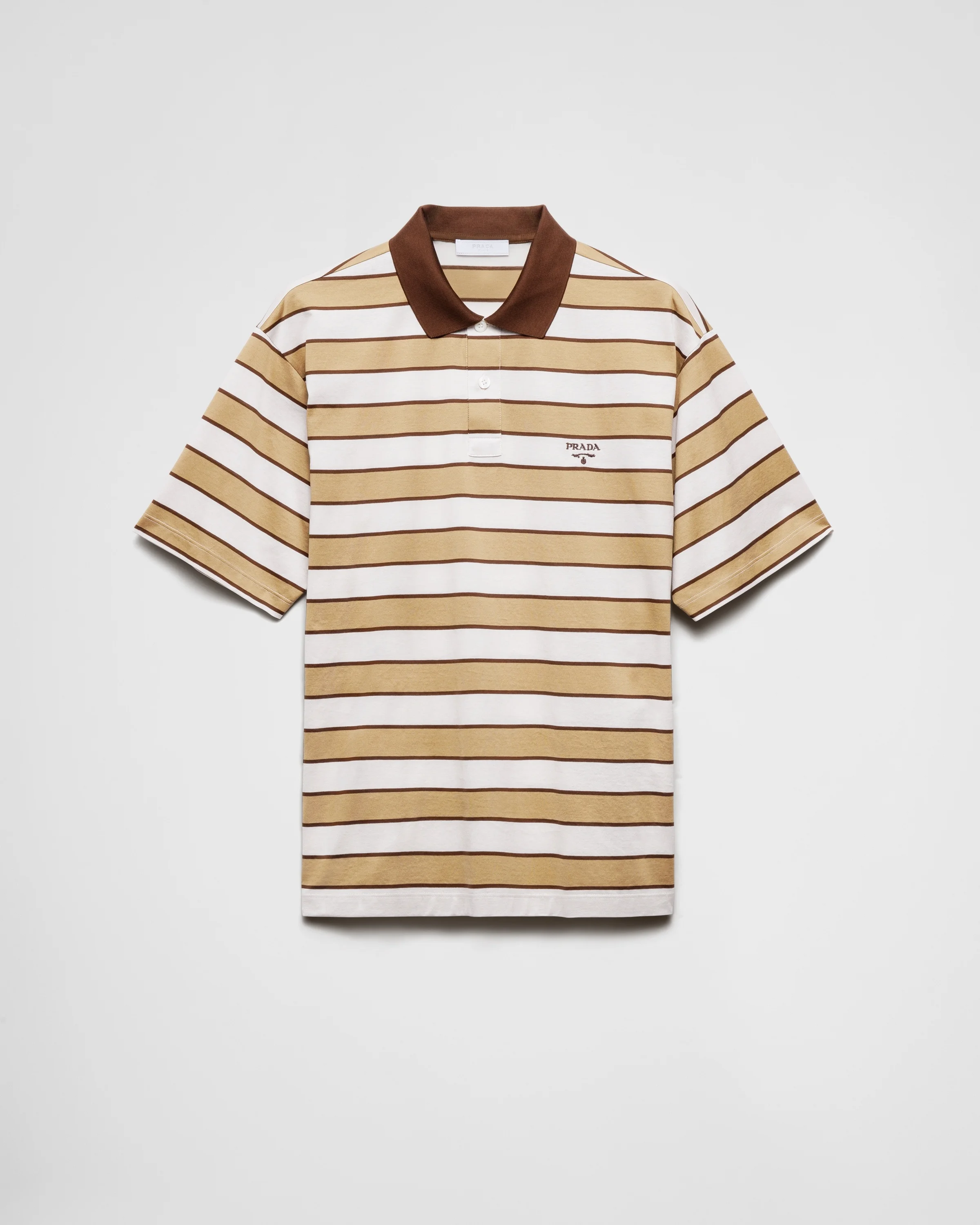 A strip motif in a contrasting color animates this cotton polo shirt characterized by a boxy fit and decorated with the lettering logo. - Product code: UJN922_16S0_F0AU1_S_WMO - Boxy fit - Short sleeves - Ribbed knit contrasting collar - Straight hem - Mother-of-pearl buttons - Embroidered logo in a contrasting color - Length: 70 cm, size: M - Imported - The model is 190 cm tall and wears a size 48 Height: 70cm MATERIALS Main material: 100% cotton
