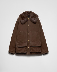 This workwear-inspired jacket is reinterpreted with new sophisticated details like the removable shearling collar that gives the functional and versatile garment an original, stylish look. - Product code: SGC766_157N_F0027_S_OOO - Regular fit - Shearling collar - Straight sleeves - Button closure - Flap pockets - Straight cuff - Regular shoulder - Straight hem - Lined and quilted - Leather triangle logo on the back - Garment dyed - Imported - The model is 190 cm tall and wears a size 48 Height: 85cm MATERIALS Cotton