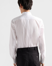 This cotton shirt with a small patch pocket on the front and rounded hem has a classic cut. The enameled metal triangle logo adds its signature touch to the versatile and refined design. - Product code: UCN631_10IV_F0009_S_OOO - Classic fit - Classic collar - Small patch pocket on the chest - Rounded hem - Classic cuff - Mother-of-pearl button closure - Enameled metal triangle logo - Imported - The model is 189 cm tall and wears a size 48 Height: 76cm MATERIALS Main material: 100% cotton