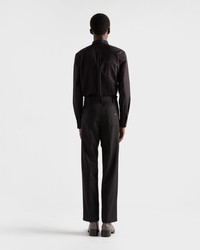This cotton shirt with a small patch pocket on the front and rounded hem has a classic cut. The enameled metal triangle logo adds its signature touch to the versatile and refined design. - Product code: UCN631_10IV_F0002_S_OOO - Classic fit - Classic collar - Small patch pocket on the chest - Rounded hem - Classic cuff - Mother-of-pearl button closure - Enameled metal triangle logo - Imported - The model is 190 cm tall and wears a size 48 Height: 76cm MATERIALS Main material: 100% cotton