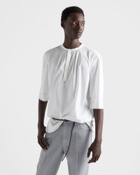 This loose, ultra-light cotton shirt is characterized by details that express timeless beauty yet are yet naturally instinctive and modern. The folds and creases create movement and depth and the raw-cut edges on the sleeves and hem convey renewed elegance. - Product code: UCN647_18WO_F0009_S_OOO - Loose fit - Mandarin collar - Front with placket - Rounded hem - Mother-of-pearl button closure - Shirt featuring raw-cut hem and sleeves - This garment has undergone an artisan treatment after assembly to give it a deliberate vintage look - The creases are created by pressing the finished garment. - Imported - The model is 188 cm tall and wears a size 48 Height: 80cm MATERIALS Main material: 100% cotton
