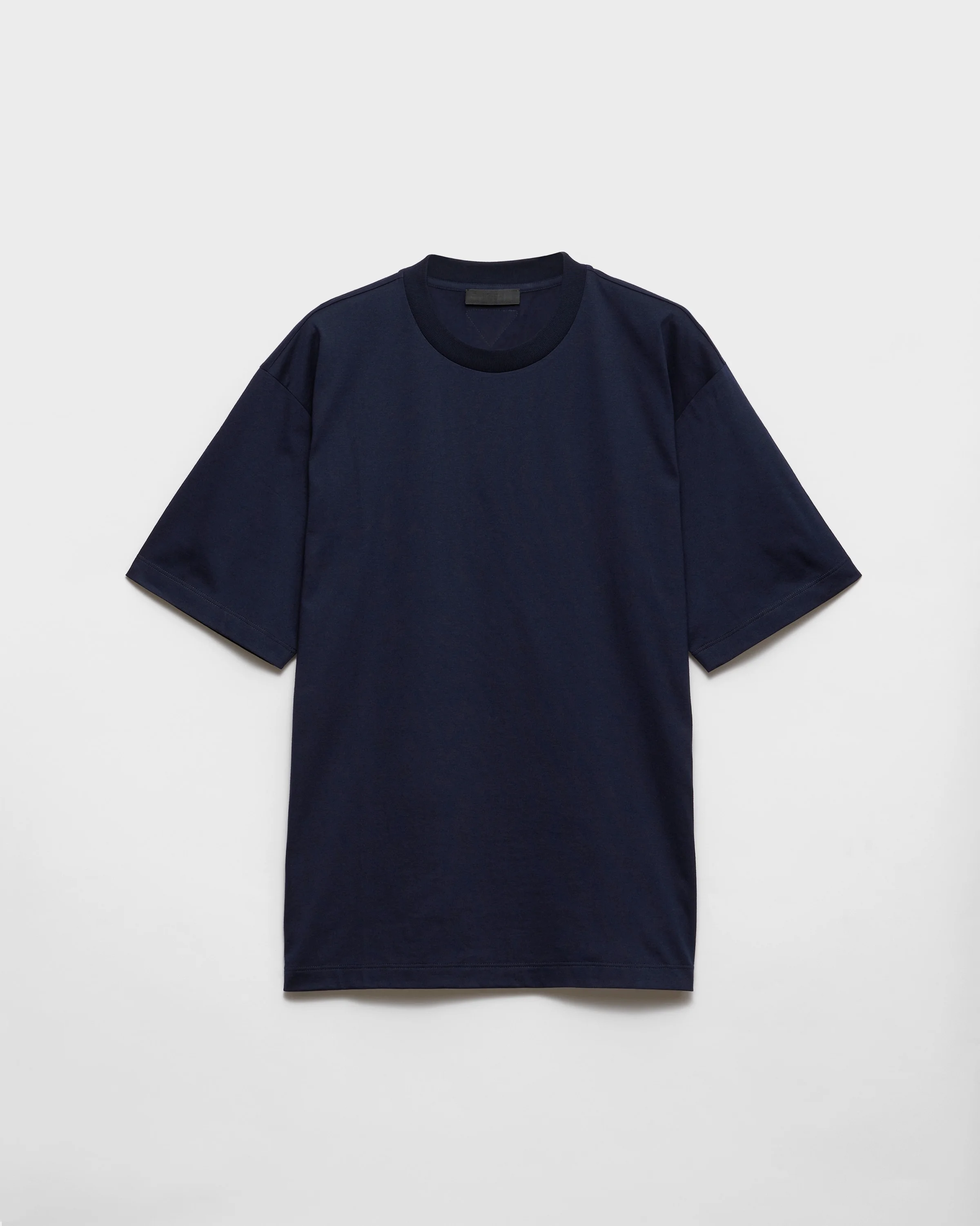 The design of this short-sleeved tee combines a contemporary, oversized silhouette with minimalist style details. The soft cotton garment completed with a ribbed knit crew neck is decorated with the iconic geometric shape of the triangle logo. - Product code: UJN921_11CD_F0124_S_WM3 - Boxy fit - Short sleeves - Ribbed knit crew-neck - Straight hem - Conceptual triangle logo - Sartorial logo label - Length 70 cm, Size: M - Imported - The model is 190 cm tall and wears a size 48 Height: 70cm MATERIALS Main material: 100% cotton