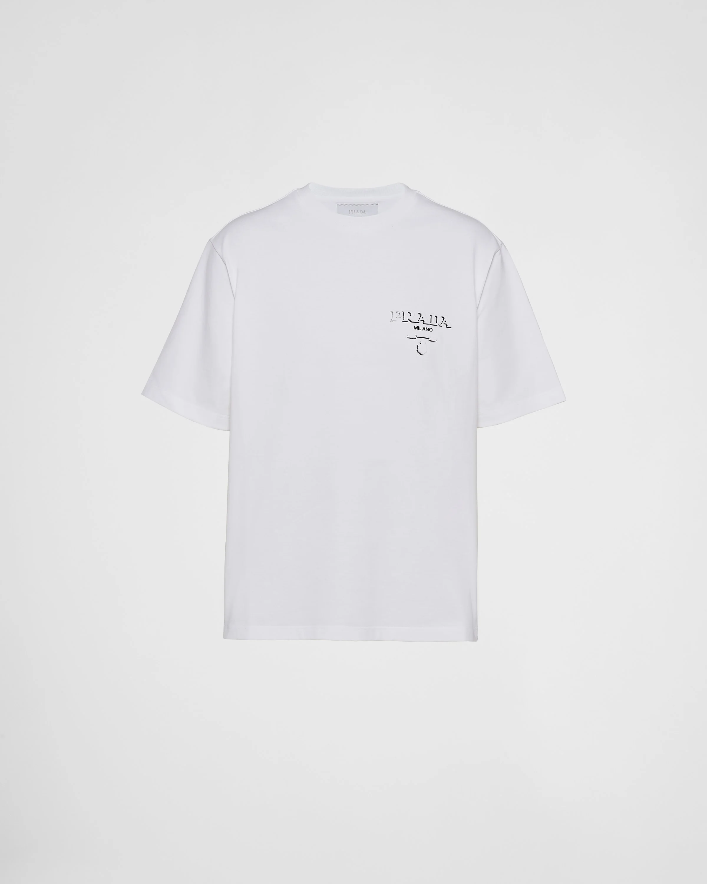 This oversized cotton tee with ribbed knit crew neck has contemporary charm. The style with a boxy silhouette is decorated with the lettering logo printed with a three-dimensional effect. - Product code: UJN896_14K7_F0009_S_OOO - Oversized fit - Short sleeves - Ribbed knit crew neck - Three-dimensional logo - Length 72 cm. size: M - Imported - The model is 190 cm tall and wears a size 48 Height: 72cm MATERIALS Main material: 100% cotton
