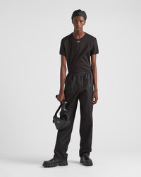 This short-sleeved cotton tee has a skinny fit and a ribbed knit crew neck. The garment is decorated with the iconic enameled metal triangle logo on the front. - Product code: UJN824_11ZM_F0002_S_222 - Extra-slim fit - Short sleeves - Ribbed knit sleeve trim - Enameled metal triangle logo - Length 68 cm, Size: M - Imported - The model is 189 cm tall and wears a size 48 Height: 68cm MATERIALS Main material: 100% cotton