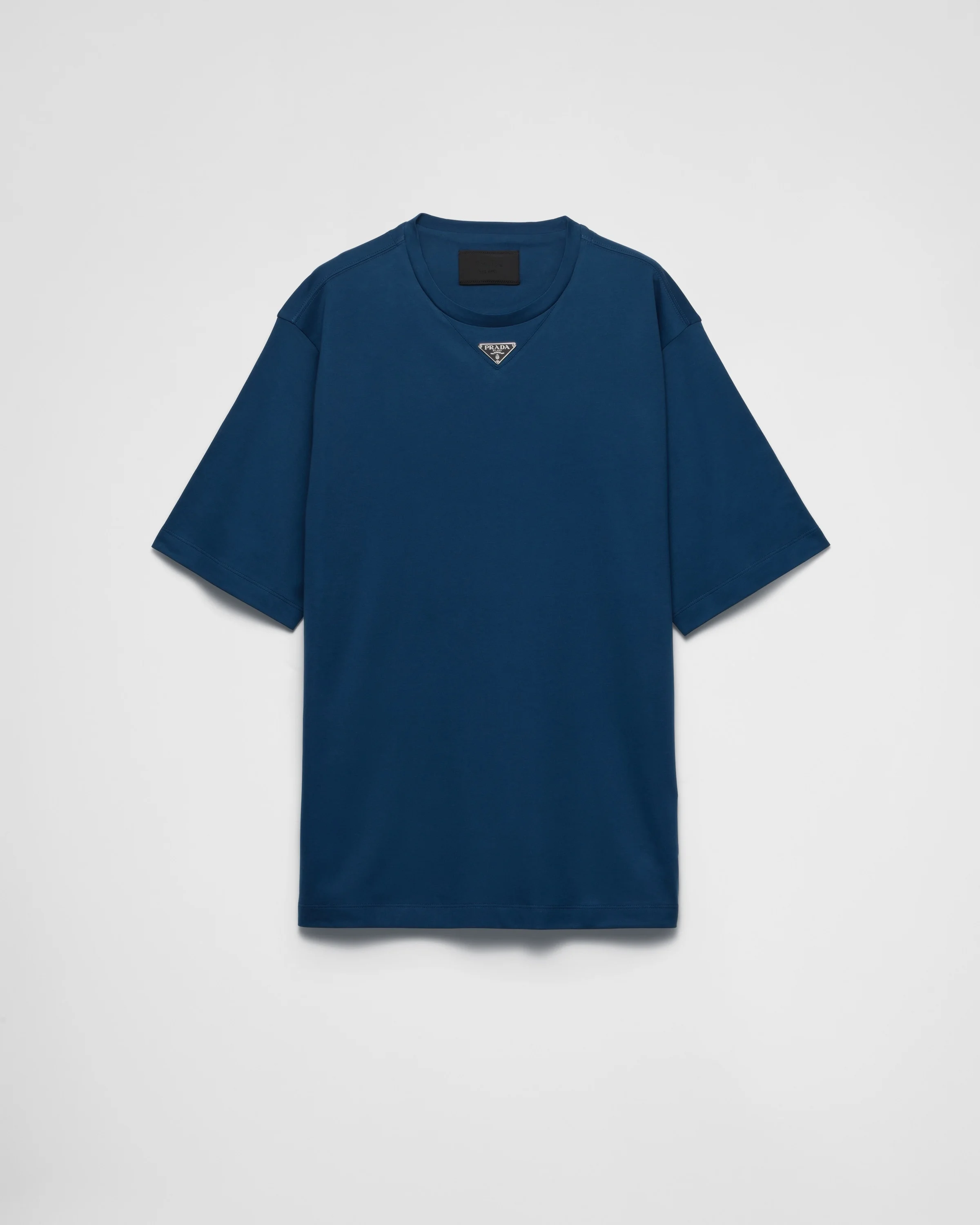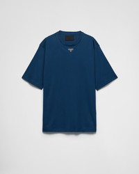 This short-sleeved cotton tee with ribbed knit crew neck has an oversized fit. The garment is decorated with the iconic enameled metal triangle logo on the front. - Product code: UJN861_240_F0AFC_S_232 - Oversized fit - Short sleeves - Straight hem - Enameled metal triangle logo - Imported - The model is 190 cm tall and wears a size 48 Height: 74cm MATERIALS Main material: 100% cotton