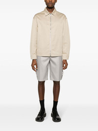 cotton-twill shirt jacket Pradaâs zip-up shirt jacket is an enduring wardrobe staple. Itâs crafted from beige cotton twill and framed with a classic collar. Highlights - Beige - Cotton - Twill weave - Classic collar - Front zip fastening - Branded zip puller - Long sleeves - Buttoned cuffs - Two front jetted pockets - Enamel triangle logo patch to the rear - Pleat detailing to the rear - Multiple internal slip pockets - Straight hem - Rear elasticated hem - Unlined Composition Cotton 100% SIZE & FIT Model measurements Height 6 ft 2 in(1.88 m) Bust/Chest 36.22 in(92 cm) Hips 36.22 in(92 cm) Waist 27.95 in(71 cm) FittingInformation Designed for a relaxed fit, this piece allows for comfort and movement when worn Made from a midweight non-stretch fabric This piece fits true to size – take your usual size