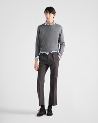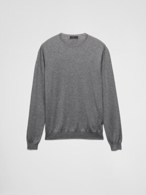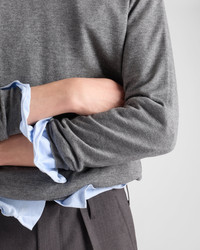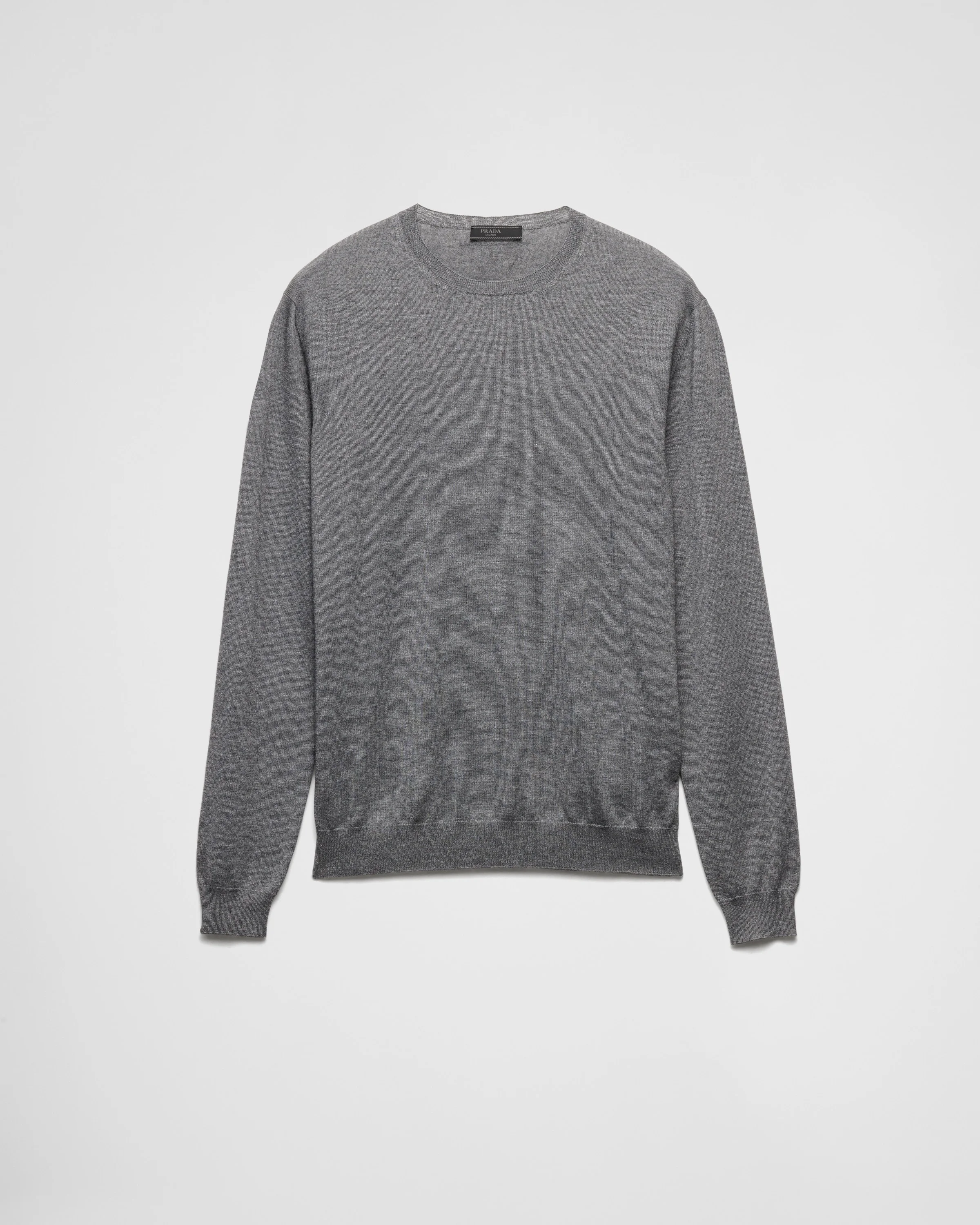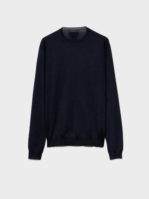 Made with a blend of fine cashmere and silk yarn, this crew-neck sweater with classic lines embodies simple elegance and timeless style. - Product code: UMF030_0B8_F0480_S_OOO - Plain knit - Regular fit - Ribbed knit crew neck - Raglan shoulder - Ribbed knit cuffs and hem - Knit triangle logo - Imported - The model is 188 cm tall and wears a size 48 Height: 66cm MATERIALS Main material: 30% silk 70% cashmere
