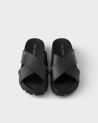 The classic lines of these slides are combined with a sporty, functional character. The crisscross silhouette in rubber is completed by sporty soles, while the lettering logo adds a refined note. - Product code: 2X3156_3LKK_F0002_F_G000 - Logo screen-printed and hot-stamped on the upper - Rubber lug sole - Heel height: 25 mm - Leather-covered insole - Imported MATERIALS Main material: Ethyl vinyl acetate - EVA