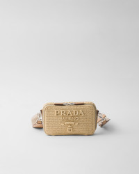 The sleek silhouette of the Prada Brique bag is reinterpreted in crochet with a unique allure inspired by a summery mood. The modern and versatile accessory with a detachable, adjustable shoulder strap is completed by the tonal embroidered lettering logo. - Product code: 2VH173_2M2T_F0018_V_NLO - Raffia-effect yarn - Embroidered logo on the front - Detachable, adjustable woven nylon tape and leather shoulder strap - Enameled metal triangle logo on the back - Zipper closure - Ring for trick attachment on shoulder strap - Interior with patch pocket - Unlined - Imported Height: 11.5cm Width: 19cm Length: 3.5cm MATERIALS Main material: Viscose