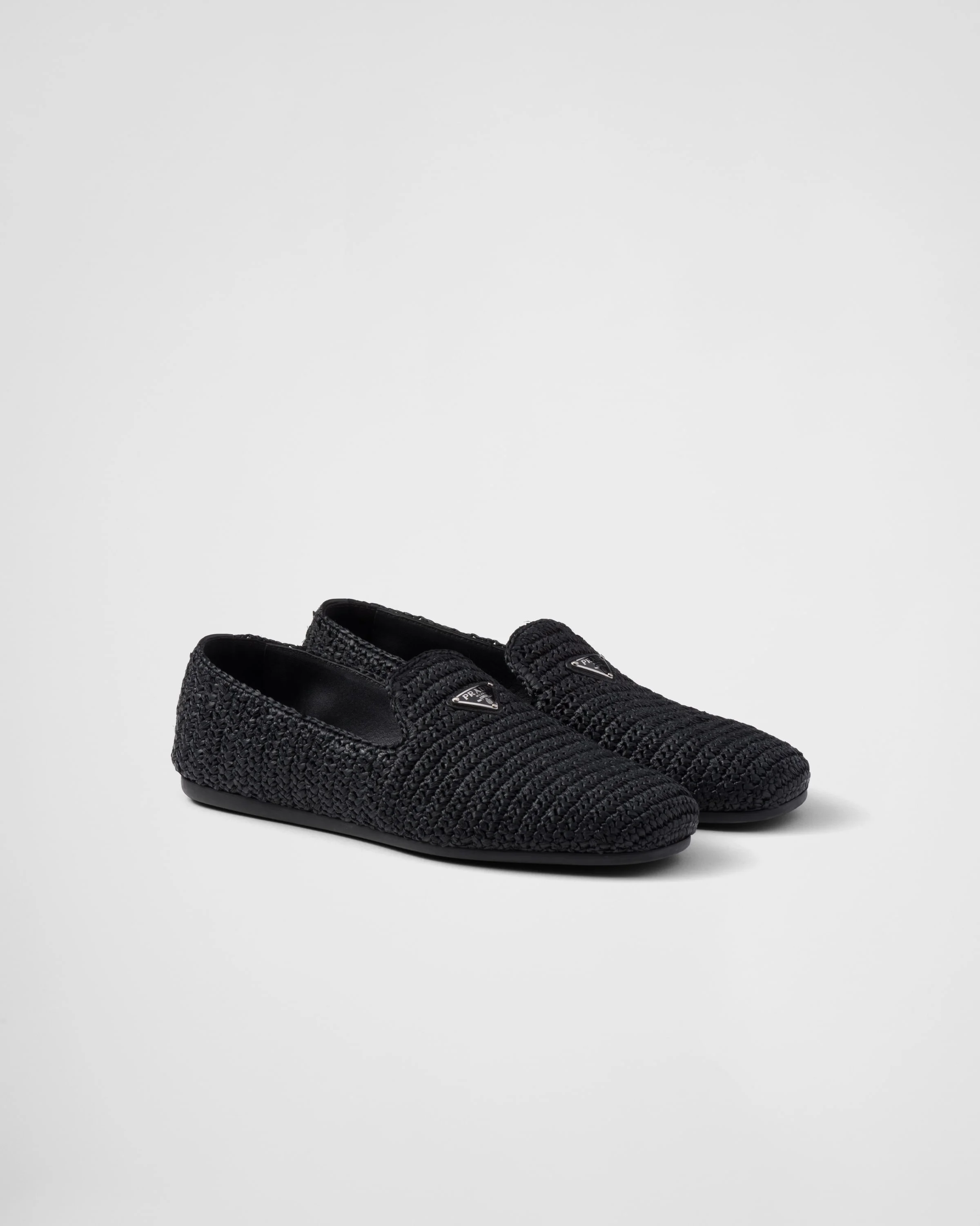 Crochet adds a light, summery touch to these slip-on shoes' simple, tapered silhouette. The iconic enameled metal triangle logo enhances the footwear with casual charm, and thin rubber soles complete the look. - Product code: 2S2983_2C2T_F0002 - Enameled metal triangle logo - Light rubber sole, 05 mm - Imported MATERIALS Main material: Viscose