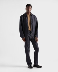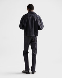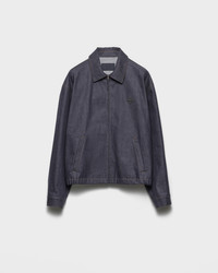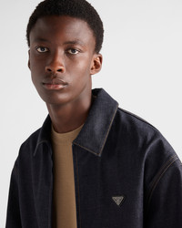 This versatile and contemporary blouson jacket made of raw denim has a sleek design characterized by contrasting top-stitching. The sophisticated, casual garment is completed with the enameled metal triangle logo. - Product code: GEB301_17XA_F0008_S_OOO - Raw treatment - Unlined garment - Classic fit - Shirt-style collar - Long sleeves, cuffs with one button - Front zipper closure - Contrasting top-stitching - Welt pockets - Center-back length: 64 cm, Size: M - Straight hem - Triangle logo - Imported - The model is 190 cm tall and wears a size 48 Height: 64cm MATERIALS Main material: 100% cotton