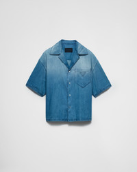 The distinctive shirt with bowling is reinterpreted in lightweight denim with a bleached effect that adds a contemporary touch to the sporty silhouette with retro charm. - Product code: GEC068_15LI_F0V3N_S_AMO - Bleached treatment - Boxy fit--Bowling collar - Short sleeves - Front button closure - Matching stitching - Patch pocket on the chest - Straight hem - Center-back length: 65 cm, Size M - Fabric triangle logo - Imported Height: 65cm MATERIALS Main material: 100% cotton
