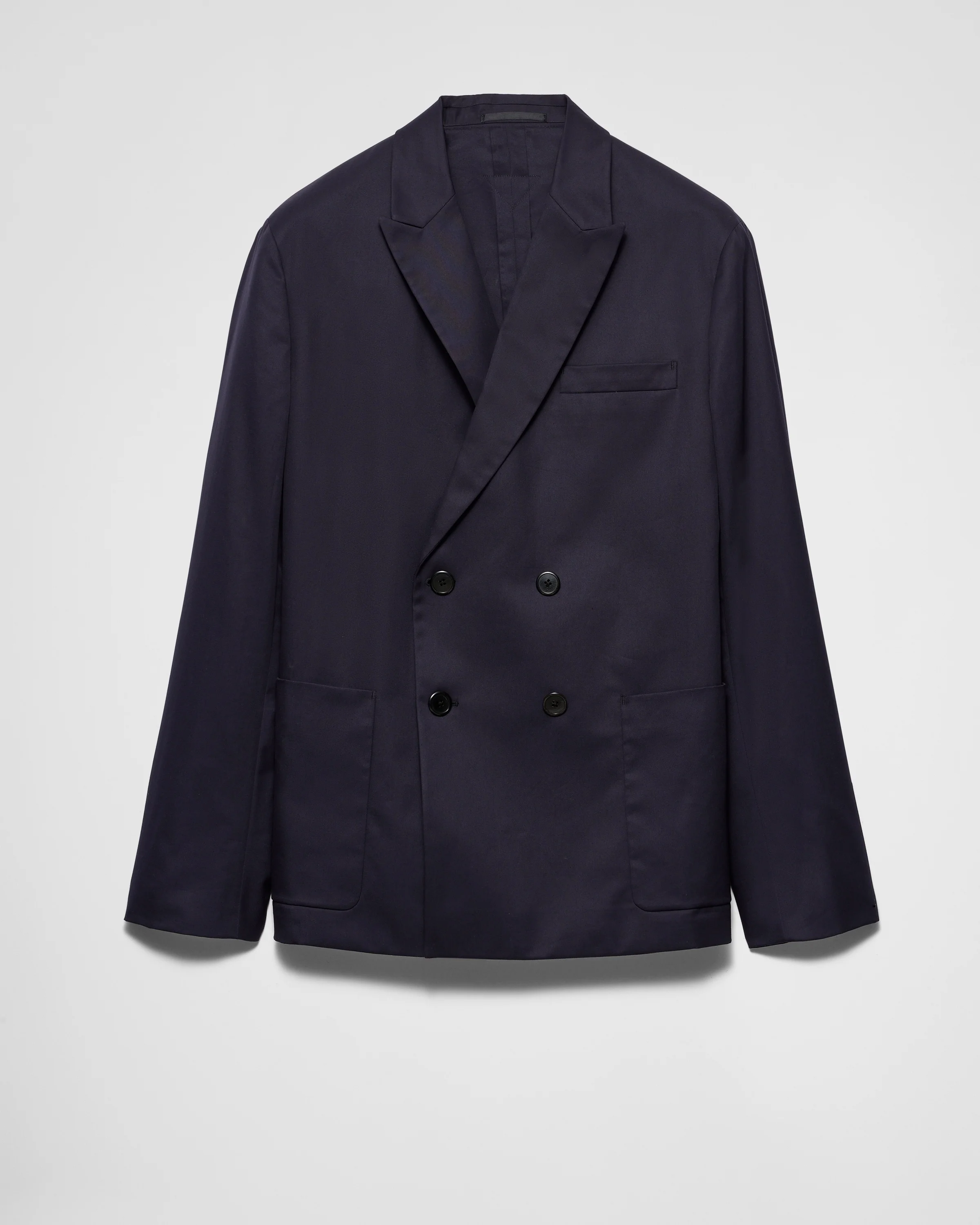 The classic tailored construction of this cotton jacket suggests refined, timeless elegance. The sleek, iconic shape of the fabric triangle logo decorates the double-breasted design. - Product code: UGM322_16HM_F0008_S_OOO - Skinny fit - Sartorial workmanship - Peak lapel - Center vent - Four button closure - Cuffs with four buttons - Patch pockets - Unlined - Lined sleeves - Fabric logo triangle on the back - Imported - The model is 188 cm tall and wears a size 48 Height: 72cm MATERIALS Main material: 100% cotton