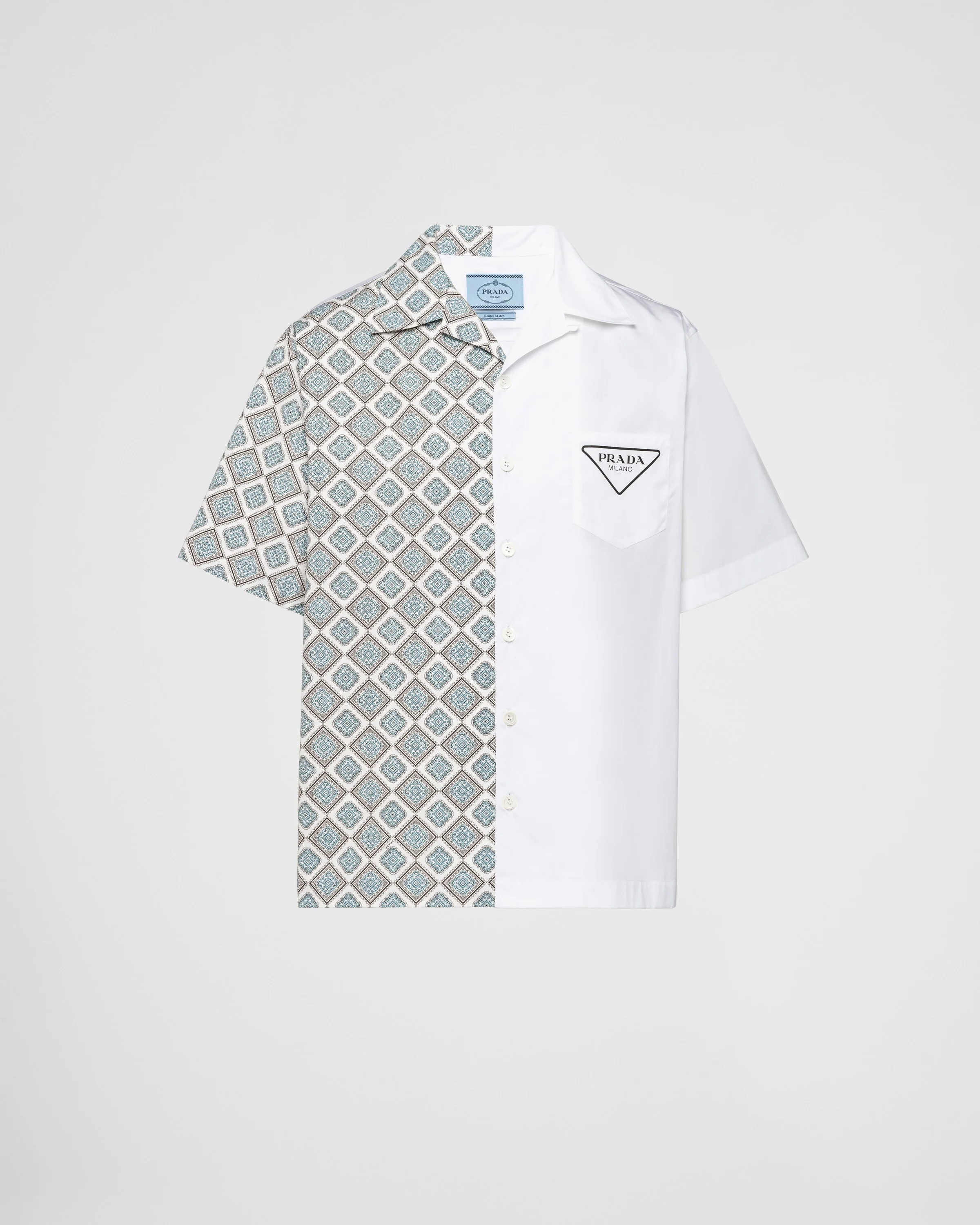 Strong graphic contrasts define Double Match shirts, animated by the dualities and contrasts emblematic of the brand. This cotton garment with a sporty oversized fit is characterized by the distinctive bowling collar. Half of the shirt is enriched with a refined geometric motif. The triangle logo printed on the breast pocket completes the silhouette with retro charm. - Product code: UCS406_14TR_F0518_S_212 - Oversized fit - Bowling collar - Classic breast pocket - Straight hem - Mother-of-pearl button closure - Triangle logo printed on the front - Double Match shirt - Imported - The model is 190 cm tall and wears a size 48 Height: 72cm MATERIALS Main material: 100% cotton