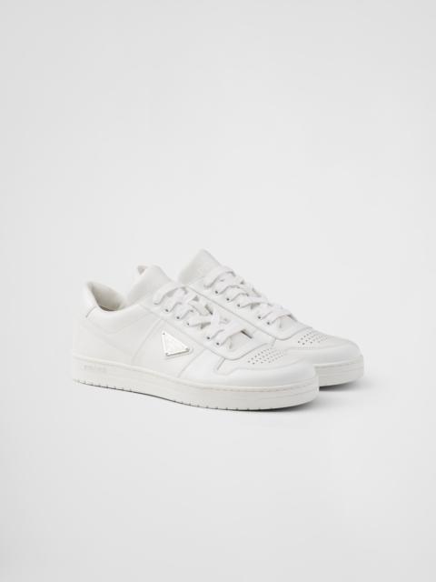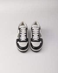 These sporty leather sneakers are accented with different interpretations of the Prada logo that appears on the tongue, along the light rubber sole, and as the iconic enameled metal triangle decorating the side of the upper. - Product code: 2EE364_3LKG_F0T8F_F_D003 - Enamel triangle on the upper - Prada Milano logo printed on the tongue - Lightweight box sole with embossed logo on the side - 35 mm sole - Removable leather-covered insole - Imported MATERIALS Main material: Calfskin