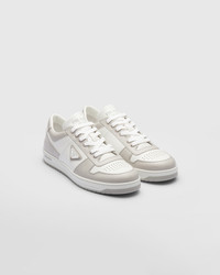 These sporty leather sneakers are accented with different interpretations of the Prada logo that appears on the tongue, along the light rubber sole, and as the iconic enameled metal triangle decorating the side of the upper. - Produktcode: 2EE364_3LKG_F0W5V - Metal eyelets and cotton laces - Enamel triangle on the upper - Prada Milano logo printed on the tongue - Lightweight box sole with embossed logo on the side - 35 mm sole - Removable leather-covered insole - Eingefuhrt MATERIALS Leather