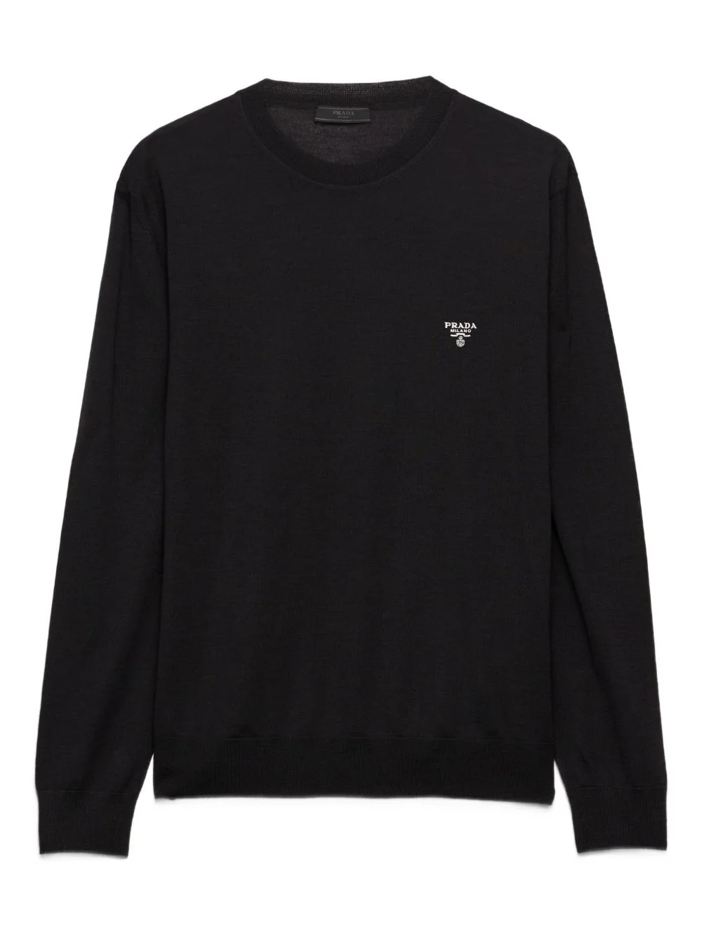 embroidered-logo crew-neck sweater Highlights - Black - Plain stitch knit - Ribbed knit crew neck - Regular shoulder - Ribbed cuffs and hem - Embroidered logo Composition Virgin Wool 100% Washing instructions Read Manufacturer Guidelines