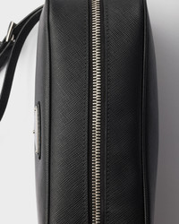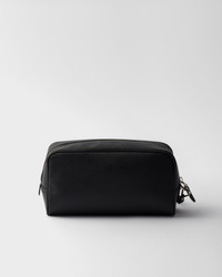 Saffiano leather, Prada's iconic material, is defined by its crosshatch texture and waxed finish that gives this pouch an elegant and versatile style. The accessory with wristlet is decorated with the enameled metal triangle logo. - Product code: 2NE065_PN9_F0002 - Removable leather wristlet - Enameled metal triangle logo on the front - Zipper closure - Logo print Re-Nylon lining - Imported Height: 11cm Width: 22.5cm Length: 8cm MATERIALS Main material: Calfskin