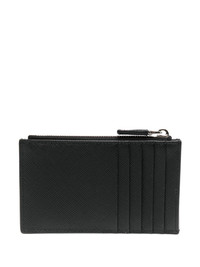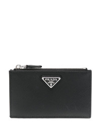 enamel triangle-logo leather wallet Highlights - Black - Calf leather - Grained texture - Enamel triangle logo to the front - Rear card slots - Main compartment - Silver-tone hardware - Top zip fastening Composition Outer: Calf Leather 100% SIZE & FIT Measurement DEPTH 0.59 in(1.5 cm) LENGTH 5.31 in(13.5 cm)