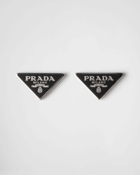 The iconic, sleek geometric shape of the Prada triangle logo defines these enameled silver earrings with a distinctive design. - Product code: 2JOA26_2DSP_F0002 - Enameled 925 sterling silver - Palladium finish - Visible logo on triangle - For pierced ears - Imported MATERIALS 925 Silver