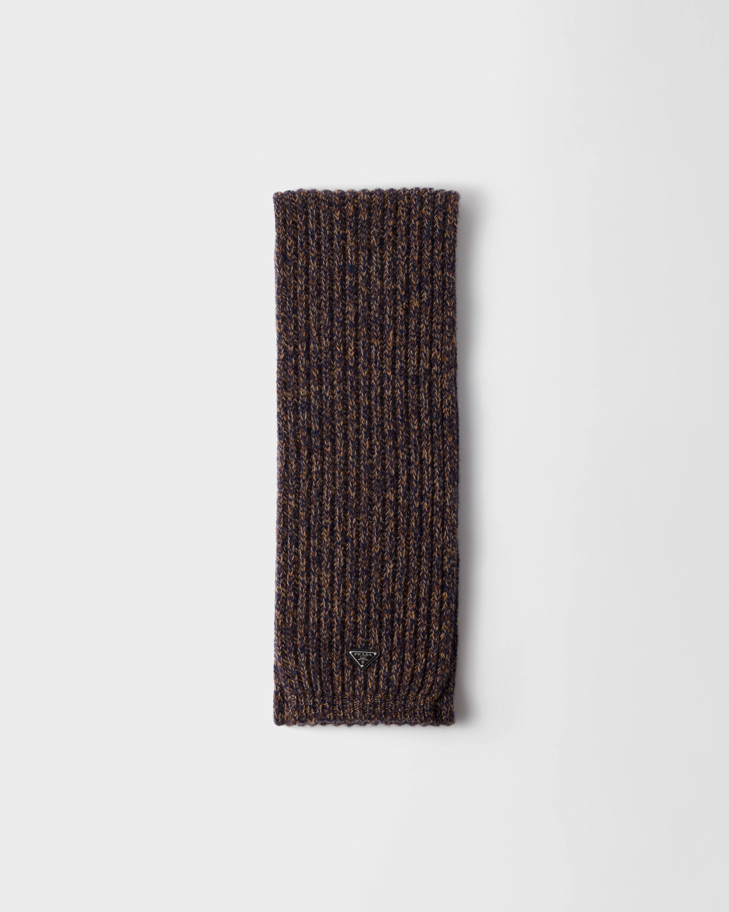 This soft, sophisticated scarf is made with a fine wool and cashmere blend. The nuances of the melange knit give the accessory distinctive style. - Product code: 2FS131_2HMD_F0XB7 - Enameled metal triangle logo - Fisherman's rib knit - 70% wool 30% cashmere - Imported Height: 180cm Width: 20cm MATERIALS Main material: Cashmere virgin wool