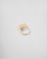 This signet ring made of recycled yellow gold reinterprets the shape of Prada's iconic triangle, an expression of elegance, modernity, innovation, and attention to artisan know-how. Prada's fine jewelry collection features the logo that has existed since the brand was born, proposing it again in this style with a sleek line and sophisticated character. - Product code: 1JA113_2CID_F0056 - 750 Yellow Gold (18 kt) - Triangle logo - Consult the Size Guide to find your size materials - Made in Italy - Each step of Prada's responsible gold and diamond production chain is verified and traceable thanks to Aura Blockchain technology. - Imported MATERIALS Gold 750