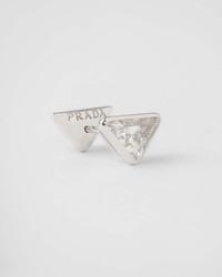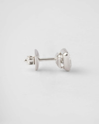 This sparkling, precious earring embodies the refined and sophisticated essence of Prada. Made of recycled gold and laboratory-grown diamond, this exclusive piece has the iconic shape of the triangle, one of the brand's distinctive symbols. - Product code: 1JO997_2FAT_F020I_V_OOS - 750 White Gold (18kt) with Prada Cut Laboratory-Grown Diamond - Laser-cut logo on the side - For pierced ears - Made in Italy - Each step of Prada's responsible gold and diamond production is verified and traceable thanks to Aura Blockchain technology. - Imported MATERIALS Gold 750