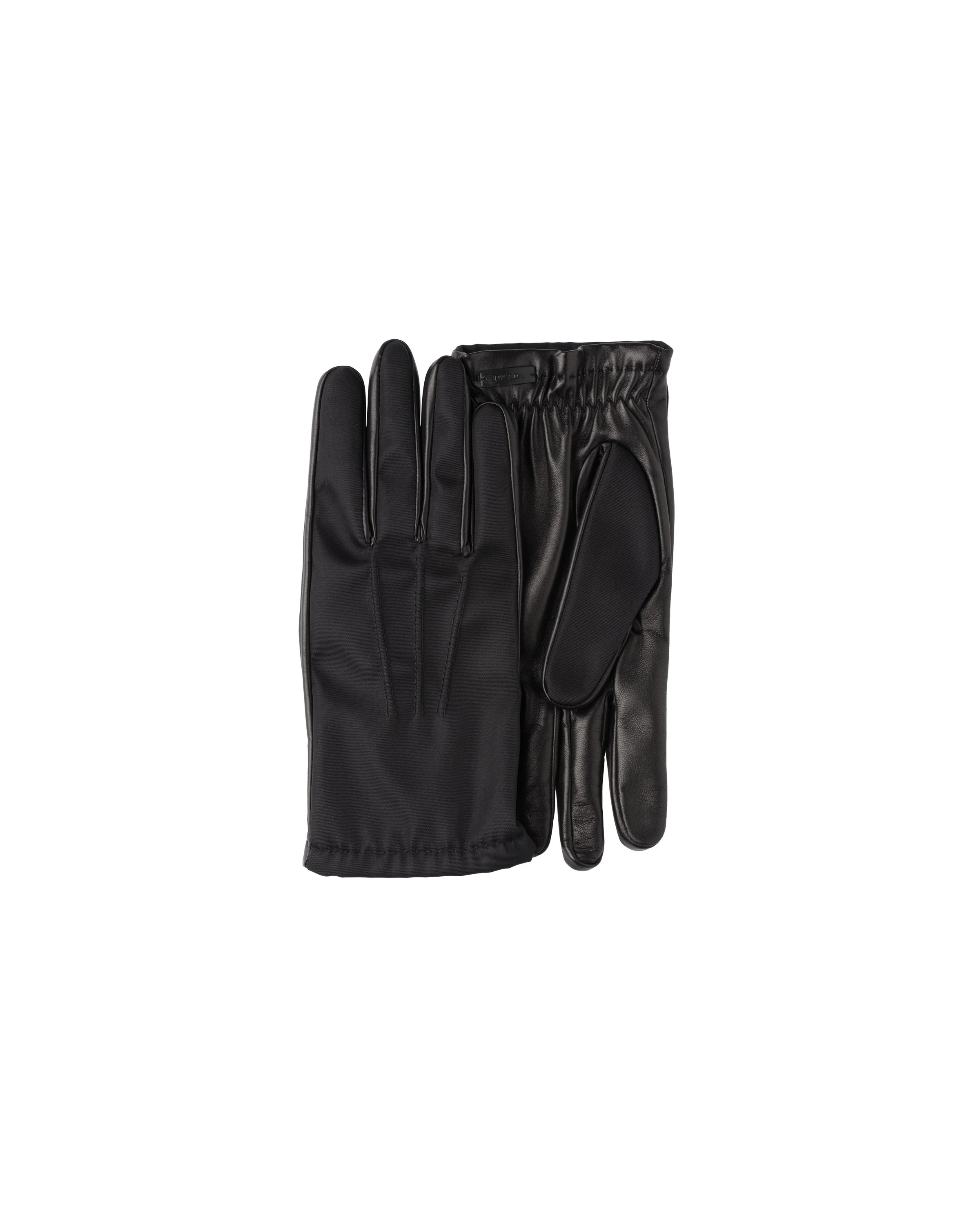 These sleek gloves with contemporary charm reveal a dual aesthetic combining the elegant touch of leather with the pragmatic character of Re-Nylon. The enameled metal triangle logo completes with an iconic note. For sustainable care to preserve the product's characteristics and reduce microfiber shedding, we recommend not washing the item too often. Let the product air out after every use and have it dry cleaned at a specialized ecological dry cleaners. - Product code: 2GG795_2DWB_F0002 - Enameled metal triangle logo - Imported MATERIALS Main material: Recycled polyamide