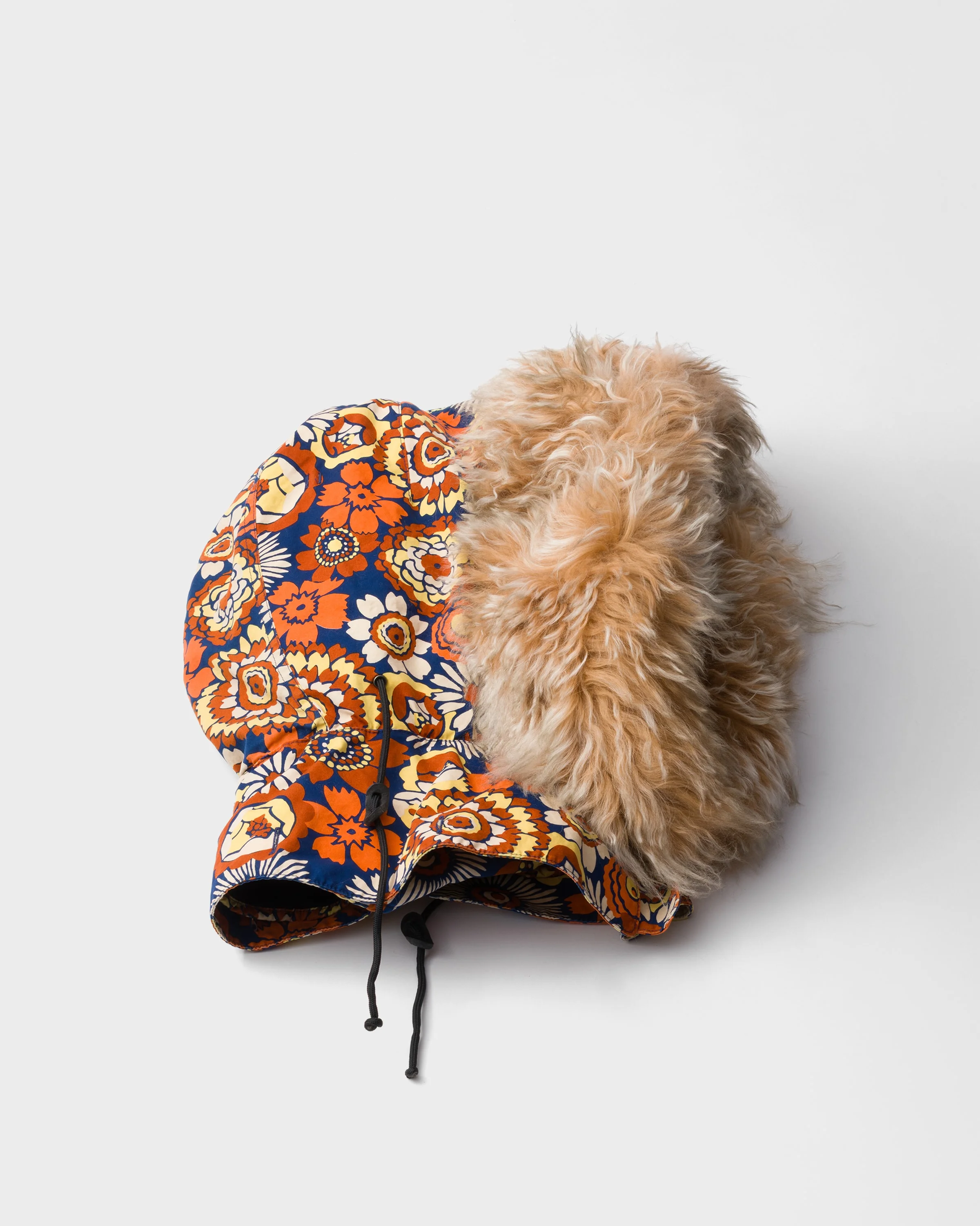 Bold volumes and details define this poplin hood animated by a lively floral print. Shearling trim emphasizes the lines of the accessory, an expression of an instinctive, personal style that plays with unexpected elements and strong contrasts. - Product code: 2HC453_2HKJ_F0033 - Loden fabric lining - Imported MATERIALS Main material: Cotton