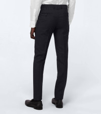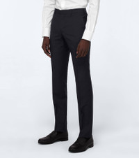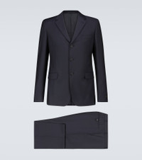 Italian-tailored from wool and mohair blend, this navy Prada suit comes with a single-breasted three-button blazer and matching unhemmed, formal pants. Product Details - Made in Italy - Material II: 84% wool, 16% mohair - Pockets: breast pocket, flap pockets - Designer color name: Blue - Material: 84% wool, 16% mohair - Lining II: 100% viscose, partially lined - Lining: 100% viscose, fully lined - Closure: zipper fly, button fastening, buttoned front - Care instructions: dry clean - Belt loops - Pocket lining: 100% cotton - Shoulder pads - Item number: P00521857 Size & Fit - True to size - Shoulder pad inserts - Slim fit - Falls to the hip - Slim-leg - The model in the picture is 185cm-6'1" and wearing a size IT 48