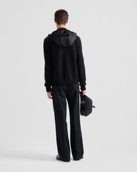 This cardigan, made from a blend of cashmere and wool, features a modern and sporty style. The iconic enameled metal triangle logo adds a unique touch, while the Re-Nylon details on the front and hood emphasize the functionality of the design. - Product code: UMG370_16AM_F0002_S_OOO - Plain Knit - Boxy fit - With hood - Semi-raglan shoulder - Ribbed cuffs and hem - Enameled metal triangle logo - Front zipper closure - Patch pockets - Re-Nylon frontal insert and hood - Imported - The model is 189 cm tall and wears a size 48 Height: 68cm MATERIALS Main material: 30% cashmere 70% virgin wool