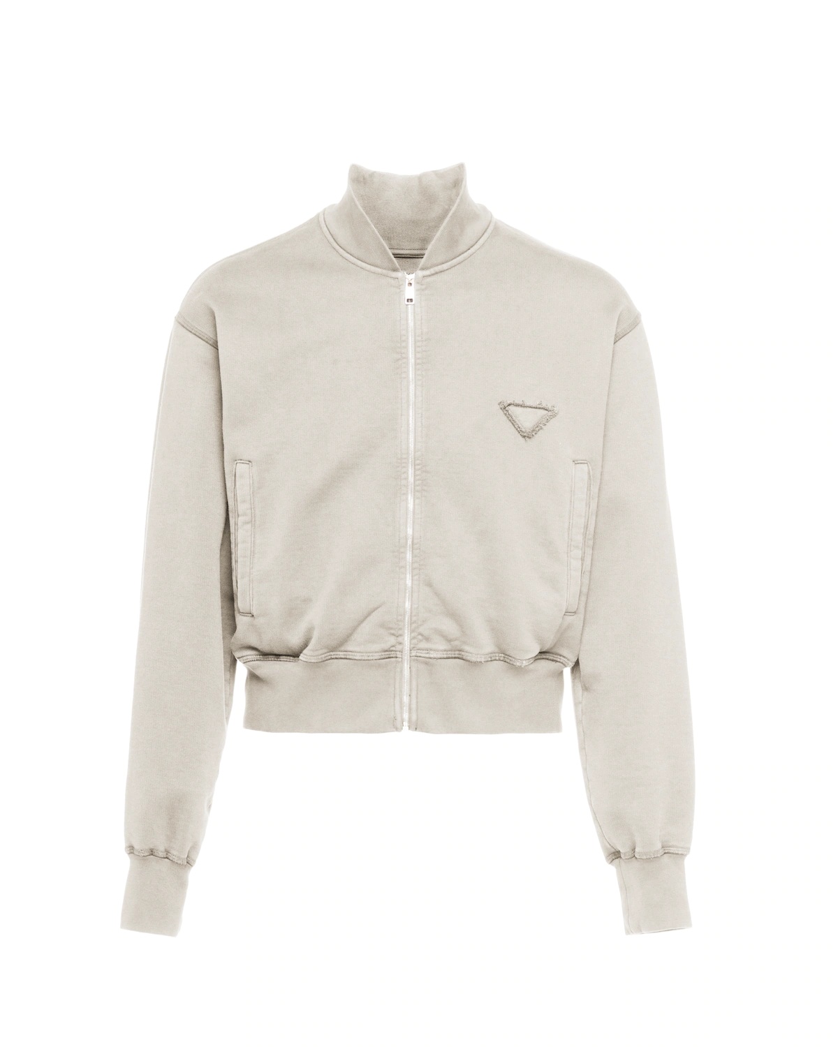 A minimal sports-inspired style, this zipped bomber jacket from Prada is crafted in Italy from thick cotton jersey, is garment-dyed in natural beige, and has a boxy silhouette. Product Details - Made in Italy - Care instructions: machine wash at 30 degrees - Pockets: side slit pockets - Designer color name: Naturale - Trim: 95% cotton, 5% elastane - Closure: zipped front - Material: 100% cotton - Item number: P00521885 Size & Fit - True to size - Designed for a loose fit - Cropped - The model in the picture is 185cm-6'1" and wearing a size M