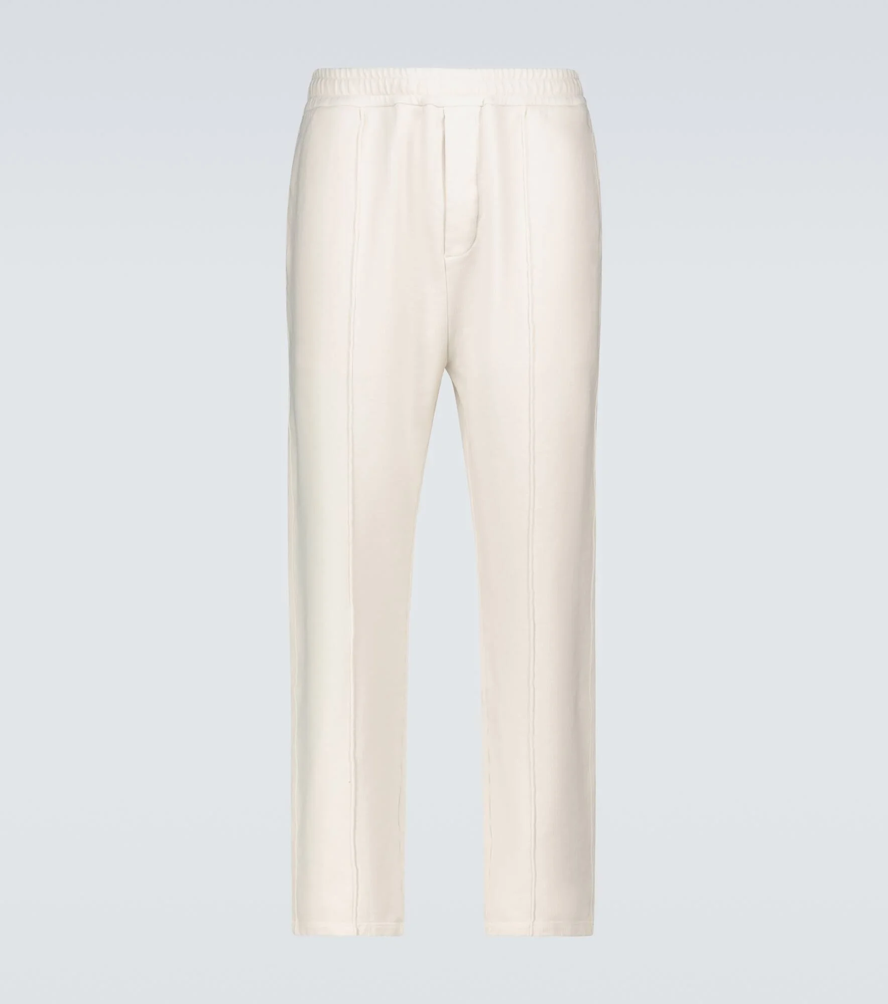 Fusing sportswear with formal attire, these Prada sweatpants are crafted from thick cotton jersey, are garment-dyed in natural beige, and have a slim fit with an elasticated waist. Product Details - Elasticated drawstring waist - Made in Italy - Care instructions: machine wash at 30 degrees - Designer color name: Naturale - Pockets: side slit pockets, back pocket - Material: 100% cotton - Item number: P00521888 Size & Fit - Fits large to size - we recommend trying one size smaller - Designed for a loose fit - Elasticated waist - Adjustable at the waist - The model in the picture is 185cm-6'1" and wearing a size S