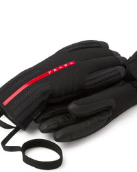 These three-dimensional knit gloves with a modern, functional design are decorated with the Prada Linea Rossa logo. The water-repellent, seamless knit back of the glove is like a second skin and is combined with a resistant goat leather palm and a waterproof, windproof GORE-TEX® membrane. - Product code: 4GG115_3K5X_F0002 - Knitted - Heat-sealed Linea Rossa label - Goatskin palm - 100% polyamide - Imported MATERIALS Fabric