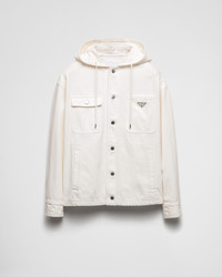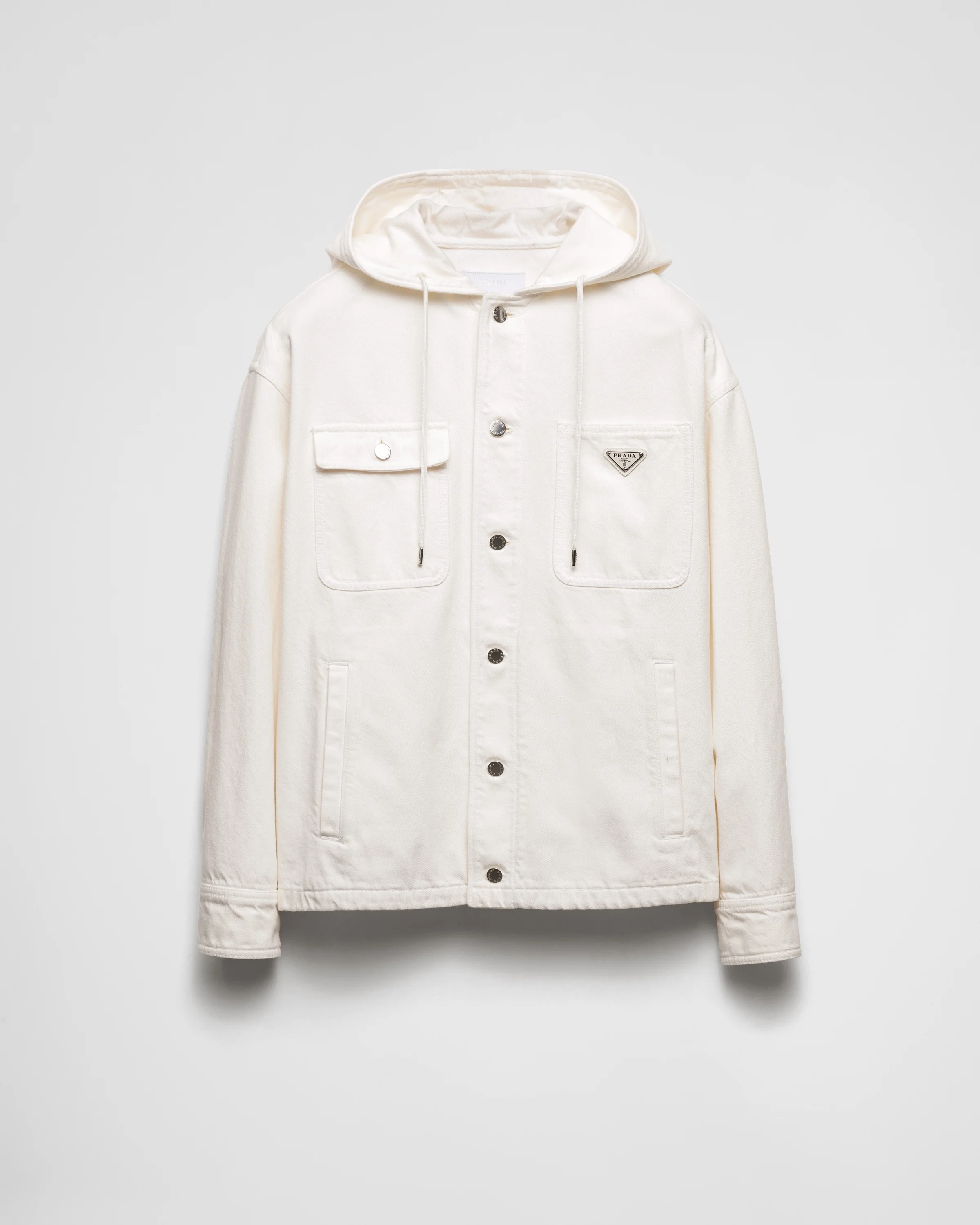 Archetypal silhouettes are reinterpreted with a contemporary, sporty attitude that mixes shapes and materials in original combinations. This denim shirt has a minimalist design defined by the hood, original details that create a hybrid garment completed by the sleek geometric shape of the triangle logo. - Product code: GEC108_14LW_F01CD_S_OOO - Garment-dyed treatment - Boxy fit - Long sleeves, cuffs with one button - Front button closure - Matching stitching - Straight hem - Center-back length: 72 cm, Size: M - Triangle logo - Hooded collar with drawstring - Front patch pockets, one with button and flap - Imported - The model is 189 cm tall and wears a size 38 Height: 72cm MATERIALS Main material: 100% cotton