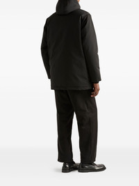 medium-weight technical fabric down jacket Highlights - Goose down padding - Technical fabric - Removable hood - Ribbed-knit cuffs - Tonal triangle logo - Oversized fit - Stand-up collar - Straight sleeves - Zipper and snap closure - Flapped patch pockets - Drop shoulder - Straight hem - Elasticized drawstring - The model is 189 cm tall and wears a size 48 Composition Outer: Recycled Polyamide 54%, Cotton 46% SIZE & FIT Measurement CHEST 39.37 in(100 cm) WAIST 34.64 in(88 cm) Washing instructions Read Manufacturer Guidelines