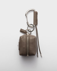 This bag charm made of leather has a multifunctional design with urban style. The iconic enameled metal triangle logo adds its refined and sophisticated signature touch to the accessory. - Product code: 2TL547_2BBE_F0218 - With snap hook and removable ring - Enameled metal triangle logo - Imported Height: 7cm Width: 4cm Length: 6cm MATERIALS Main material: Calfskin