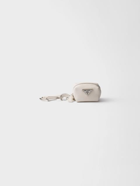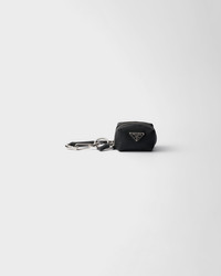 This bag charm made of leather has a multifunctional design with urban style. The iconic enameled metal triangle logo adds its refined and sophisticated signature touch to the accessory. - Product code: 2TL547_2BBE_F0002 - With snap hook and removable ring - Enameled metal triangle logo - Imported Height: 7cm Width: 4cm Length: 6cm MATERIALS Main material: Calfskin