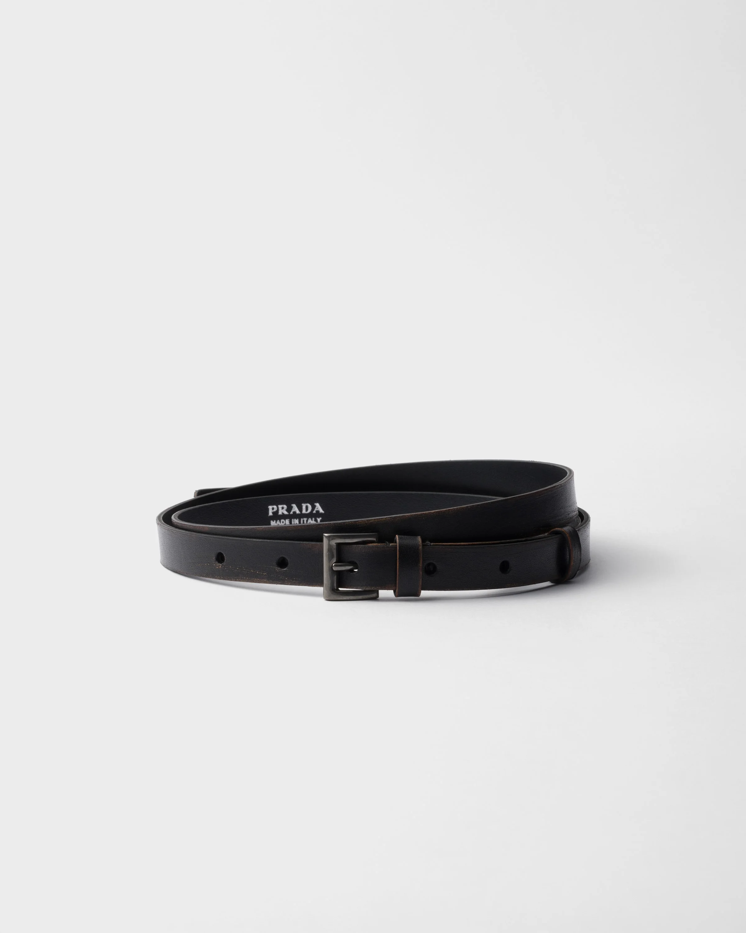 Sleek and sophisticated, this narrow leather belt is completed with a geometric metal buckle. - Product code: 2CC703_V69_F0Y71 - Metal buckle - Lasered logo on the buckle - Imported Height: 1.5cm MATERIALS Main material: Calfskin