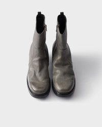Balancing structure and fluidity, these booties reinterpret the bold style of '70s footwear with contemporary lines and innovative details. Unusual combinations define the distinctive design, characterized by a round toe with emphasized volumes that ends in a slim boot leg. The aged leather gives depth and uniqueness to the footwear, an expression of an authentic and instinctive style. - Product code: 2UE032_MJ0_F0048_F_X000 - With zipper - Boot leg: 20 cm - Leather sole with rubber half-sole and heel layer with hot-stamped logo - Sole height 57 mm - Leather insole - Imported MATERIALS Main material: Calfskin