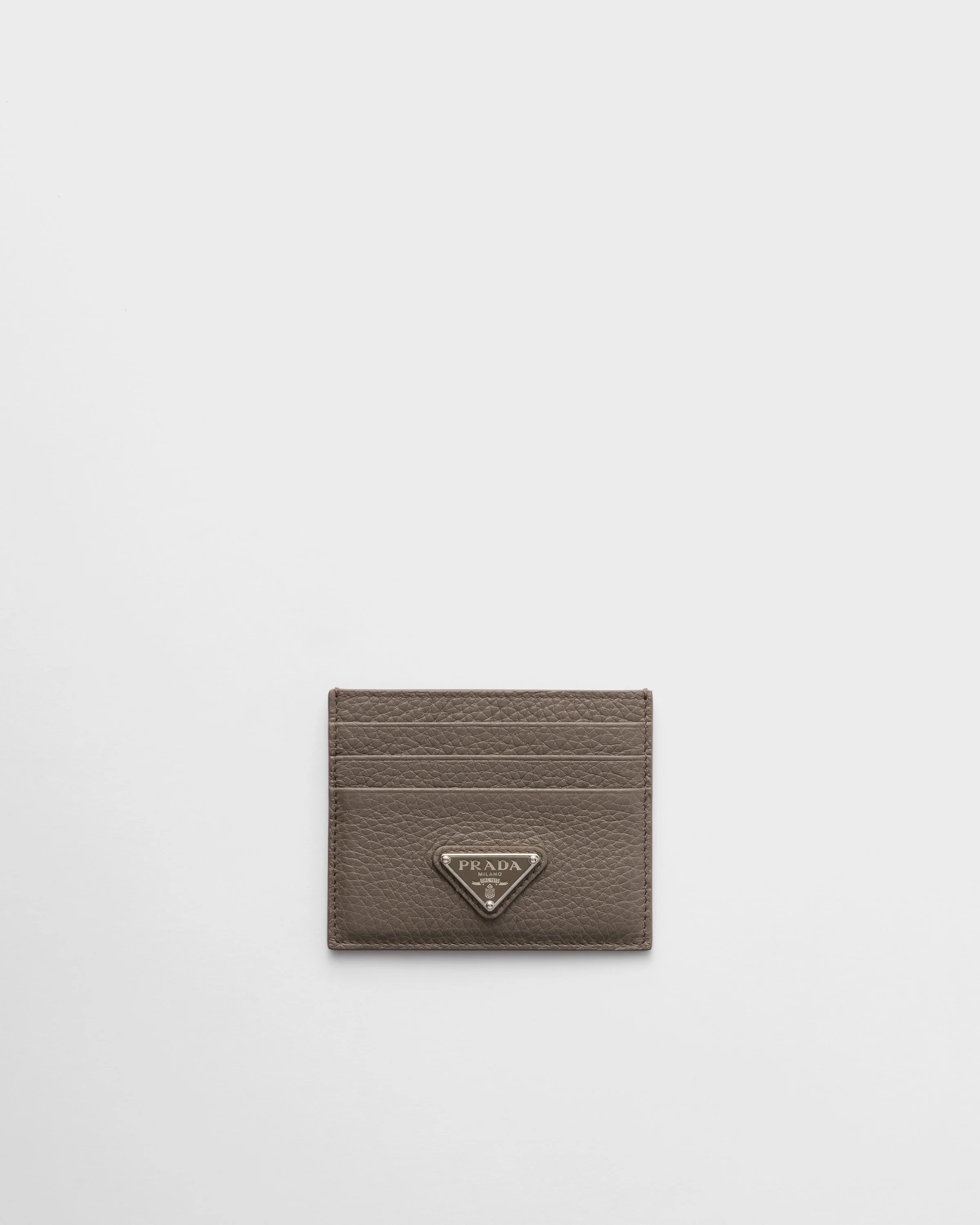 This leather card holder with a sleek, refined design is defined by six card slots and a practical internal pocket. The accessory is completed by the iconic enameled metal triangle logo. - Product code: 2MC025_2E54_F0218 - Enameled metal triangle logo - Six card slots - Internal pocket - Moire and leather lining - Imported Height: 8cm Width: 10cm MATERIALS Main material: Calfskin