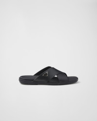 These leather sandals with a classic silhouette have clean lines and simple but refined details. The crisscross style, characterized by a lightweight rubber sole, features the iconic enameled metal triangle logo. - Product code: 2X3111_3LEM_F0002 - Enameled metal triangle logo - Rubber sole - Leather-covered insole - Imported MATERIALS Main material: Calfskin