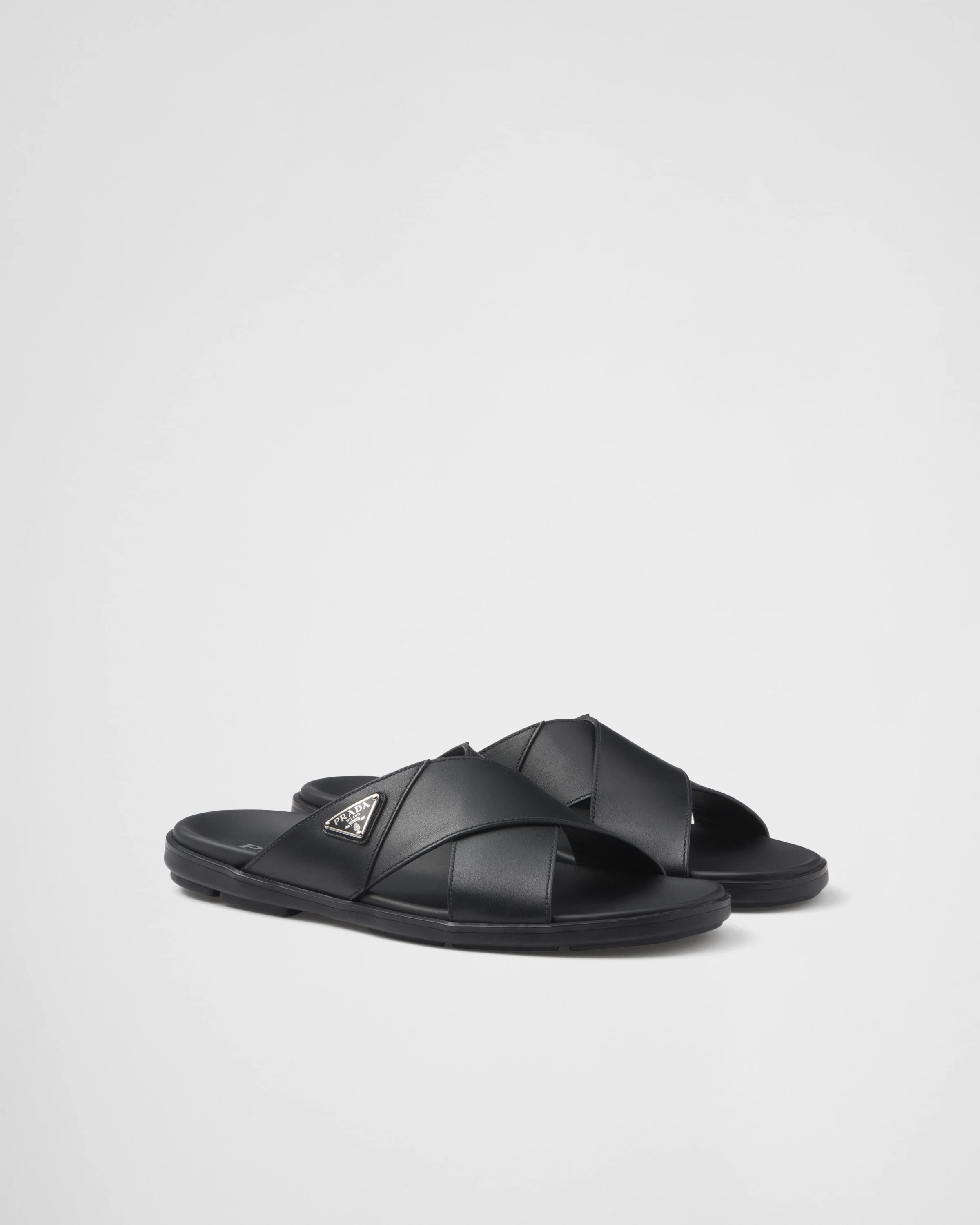 These leather sandals with a classic silhouette have clean lines and simple but refined details. The crisscross style, characterized by a lightweight rubber sole, features the iconic enameled metal triangle logo. - Product code: 2X3111_3LEM_F0002_F_G000 - Enameled metal triangle logo - Rubber sole - Leather-covered insole - Imported MATERIALS Main material: Calfskin