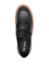 black enamel triangle logo branded insole flat sole Size & Fit Model Measurements: Bust: 0cm Height: 0cm Hips: 0cm Waist: 0cm Fabric and Care Designer Style ID: 2DE151FG000070 Designer Colour: F0002 NERO Composition: Sole: Rubber 100%; Outer: Calf leather 100%; Lining: Calf leather 100%Made in Italy